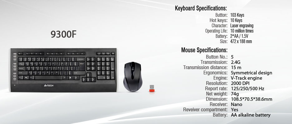 A4 TECH 9300F KABLOSUZ KLAVYE & MOUSE SET