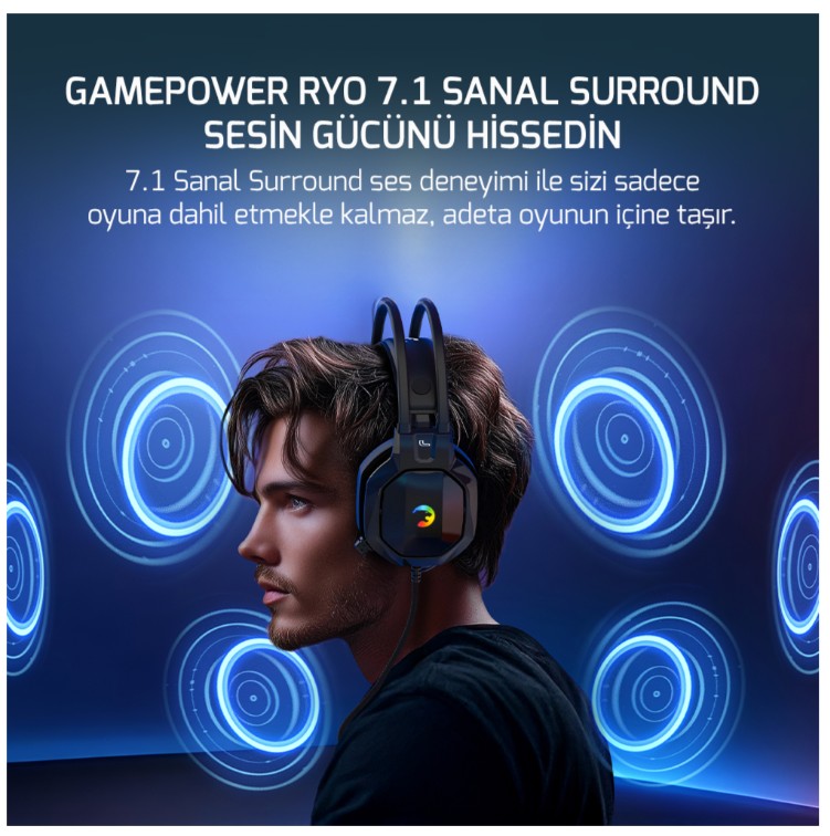 GAMEPOWER RYO Siyah 7.1 Surround Rainbow USB Gaming (Oyuncu) Kulaklık