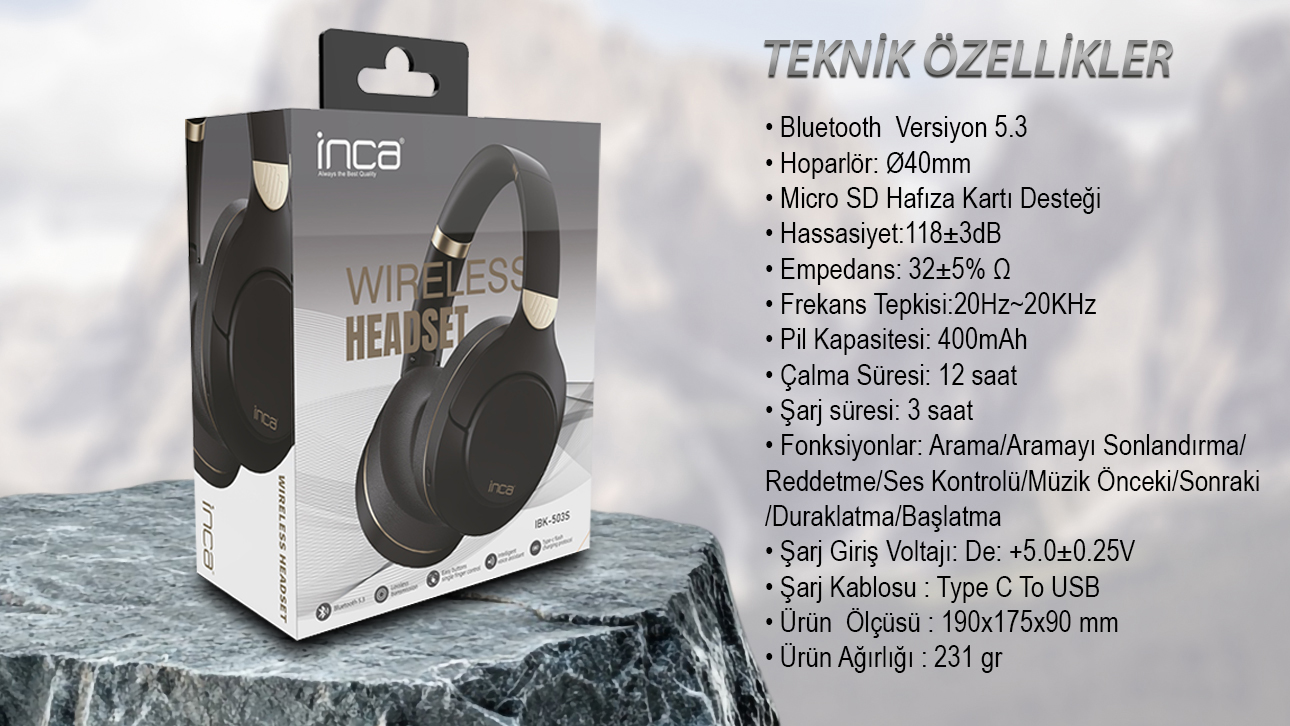 | INCA Ibk-503S Kablosuz 5.3 Bluetooth Hafıza Kart Destekli Kulak Üstü Kulaklık Bej SİYAH | |