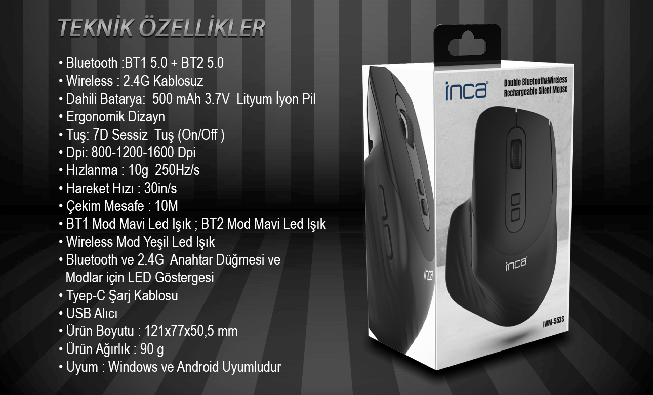 | INCA IWM-553S Bluetooth+Wireless Double Mod Rechargeable Silent şarjlı Mouse | |