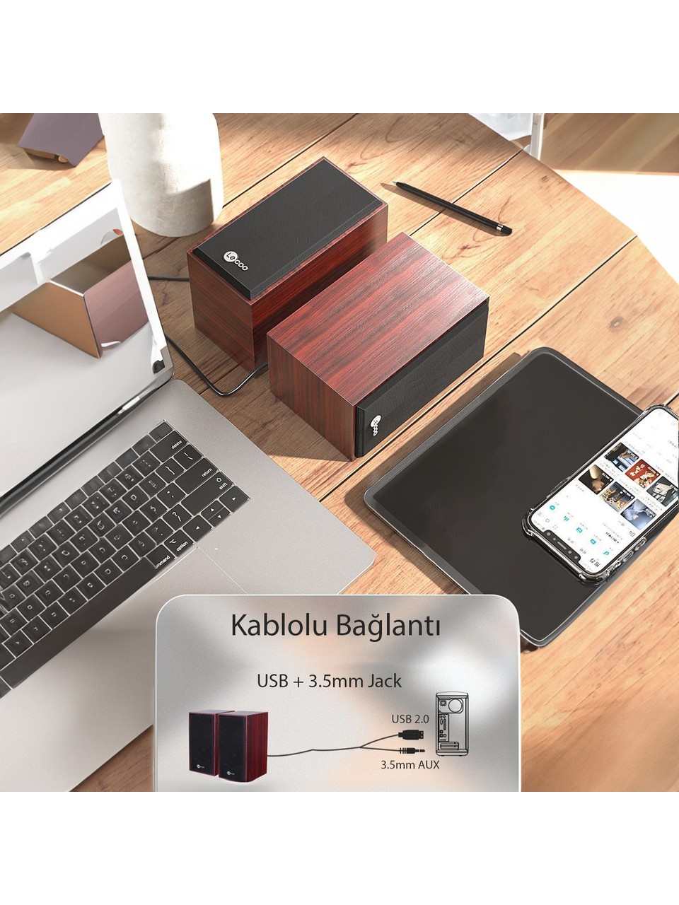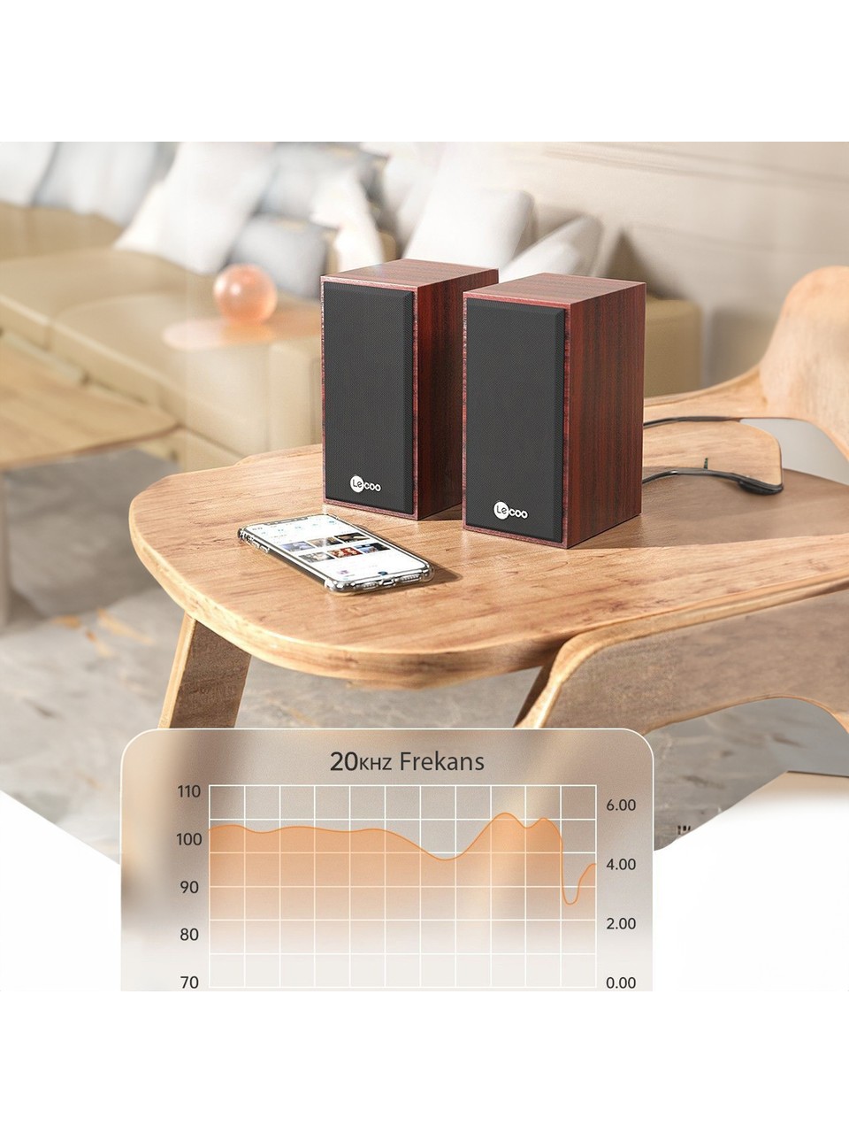 Lecoo DS105 Kablolu USB + 3.5mm Jack Girişli 6W Stereo Masaüstü Ahşap Hoparlör