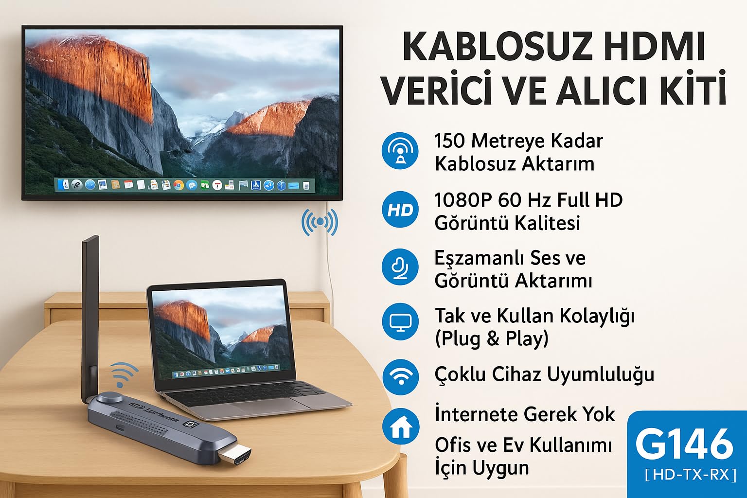 MULTICOLOR G146 HDMI KABLOSUZ GÖRÜNTÜ AKTARICI 150 MT HDMI KABLOSUZ AKTARICI