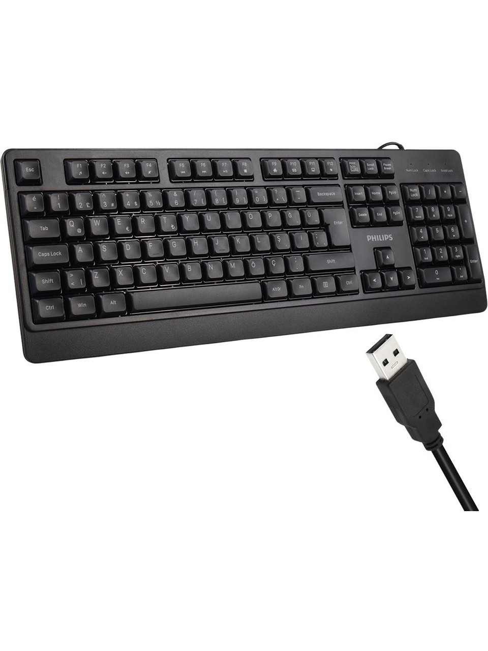 Philips SPK6247B USB 1.2 Metre Kablolu Klasik Siyah Numpadli Türkçe Q Klavye Özellikleri