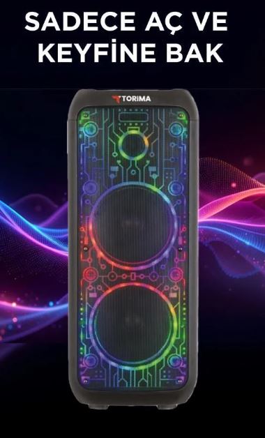 Torima D64, güçlü ses performansı ve etkileyici ışık efektleriyle müziğin enerjisini her ortamda hissettirir. 30W çıkış gücüne sahip bu hoparlör, çift 8” hoparlör ünitesi ile yüksek ses kalitesi ve güçlü bass sunar.
