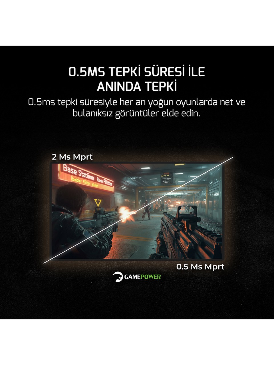 0.5ms tepki süresiyle her an yoğun oyunlarda net ve bulanıksız görüntüler elde edin.