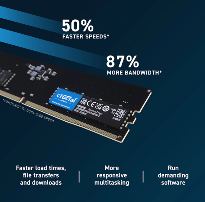 CRUCIAL 32GB 5600Mhz DDR5 CT32G56C46U5 UDIMM,1.1V CL46 DESKTOP RAM | |