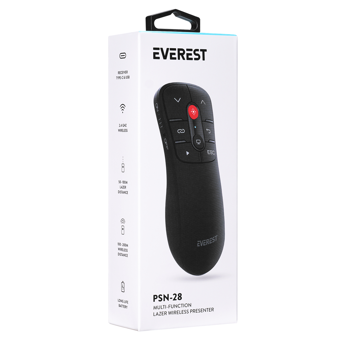 Everest PSN-28 Çok İşlevli USB Kırmızı Lazerli 2.4Ghz Kablosuz Type C Profesyonel Sunum Cihazı