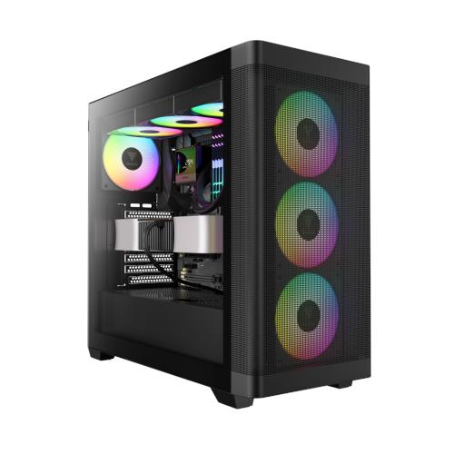 DAHİLİ FAN İLE 4 ARGB PWM FANDört adet dahili sessiz PWM ARGB fana sahip olan kasa, olağanüstü aydınlatma ve minimum gürültüyle ince ayarlı hava akışı sağlar. Dahili 8 portlu PWM ARGB fan göbeği, kolay yönetim ve senkronizasyon sağlayarak, fanların yüksek performanslı ve sessiz çalışmasını mükemmel şekilde tamamlayan uyumlu bir aydınlatma düzeni sağlar.