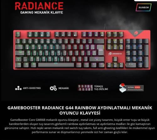 GAMEBOOSTER RADIANCE G44 RAINBOW AYDINLATMALI MEKANİK OYUNCU KLAVYESİ