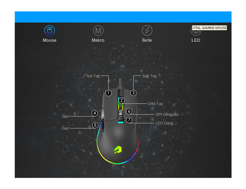 Yazılım ile kolayca mouse'unuzu özelleştirebilir ve makro , aydınlatma gibi ayarları düzenleyebilirsiniz.