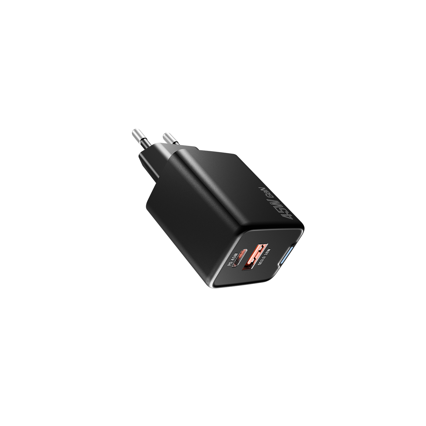 HYTECH HY-XEG45 Type USB-C 45W PD + 18W USB QC 3.0 GAN Siyah Hızlı Ev Şarj Adaptörü