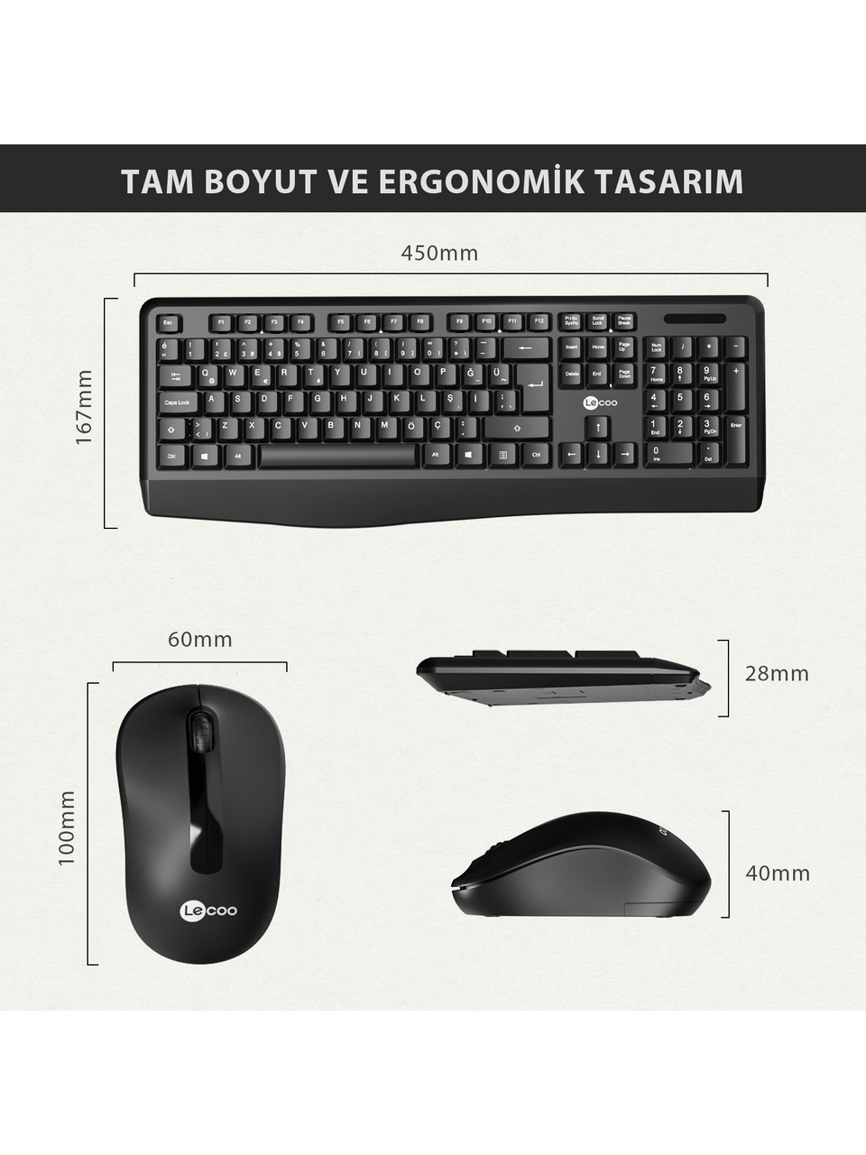Lecoo KW211 Kablosuz Türkçe Q Klavye & Mouse Set Siyah