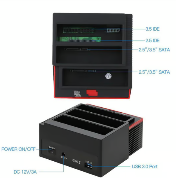 MOLIX MX-2390 Usb 3.0 2.5" 3.5" Ide+2x Sata Yuvası Hdd Docking Station 893U3 2 SATA 1 İDE