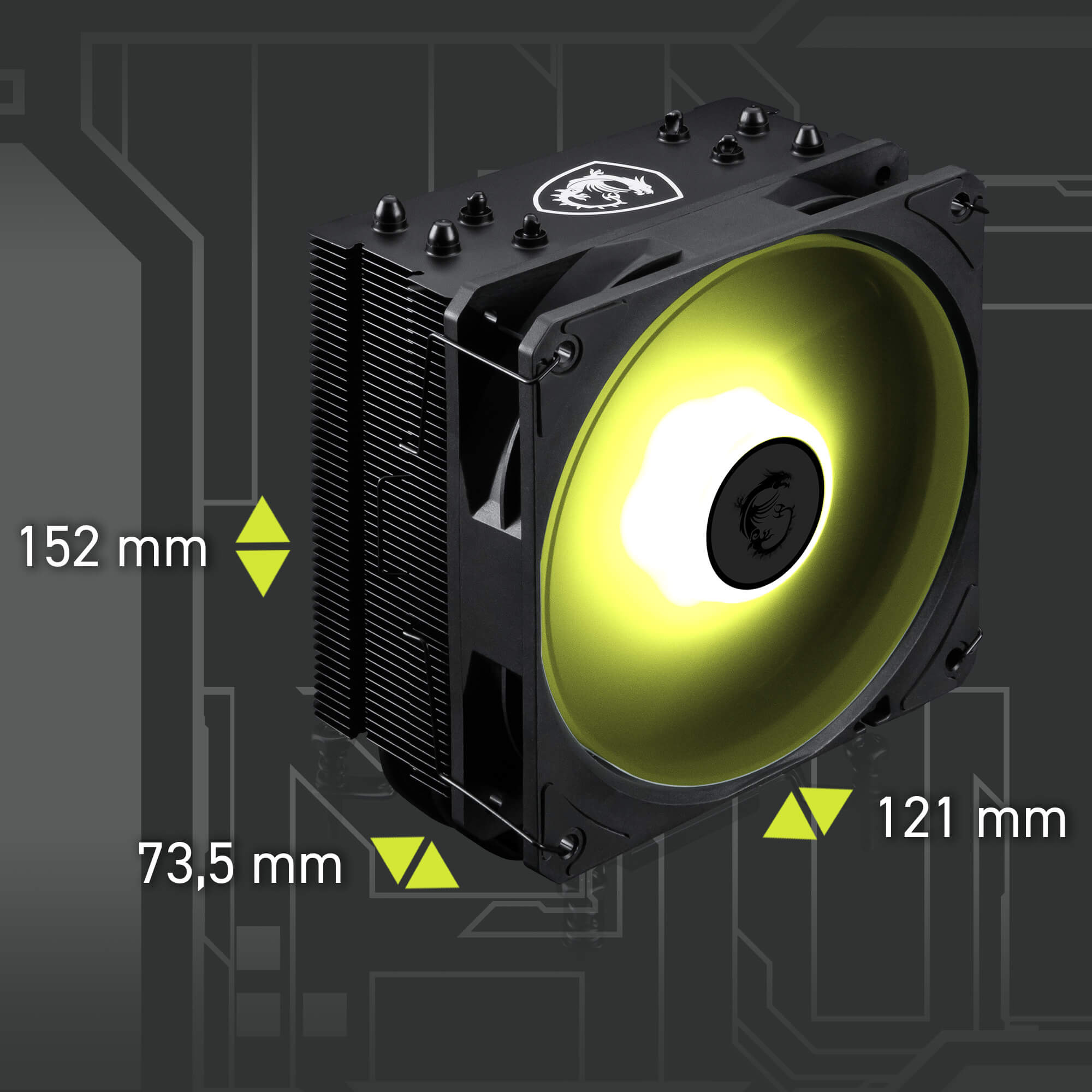MSI MAG COREFROZR AA13, anaakım ve performans PC’leri için ideal bir single-tower hava soğutma çözümüdür. 4 adet 6mm yüksek verimli heatpipe ve 120mm CYCLOBLADE 7 fandan oluşan AA13, güçlü ve kararlı bir soğutma performansı sunar. Yalnızca 152 mm’lik kompakt yüksekliği ile birçok kasa ile uyumludur. En yeni Intel LGA 1700/1851 ve AMD AM4/AM5 soket tipleri ile uyumludur.