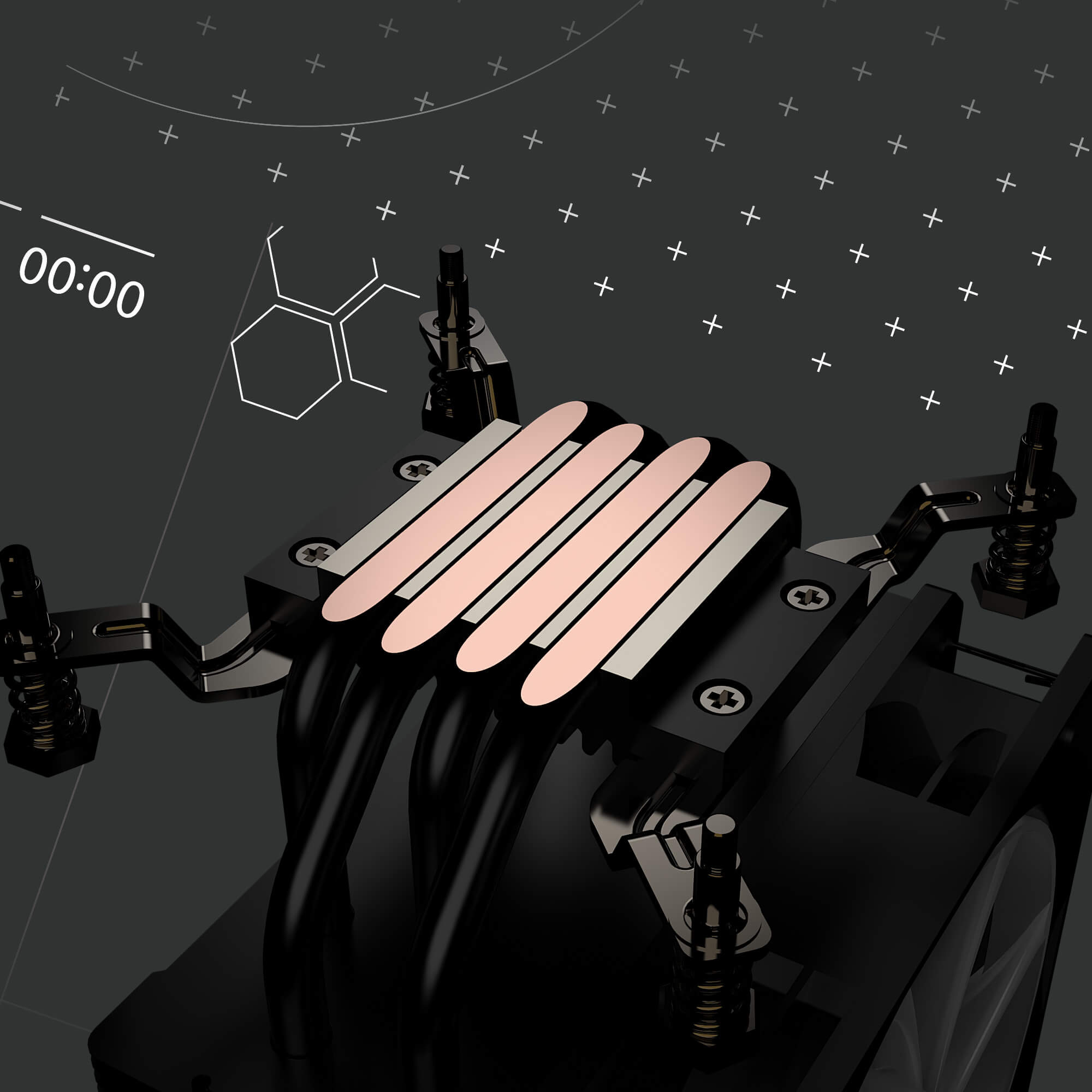 Doğrudan temaslı heatpipe tasarımı, CPU yüzeyine tamamen temas eden bakır soğutma boruları ile çok daha iyi bir ısı transferi sağlar.