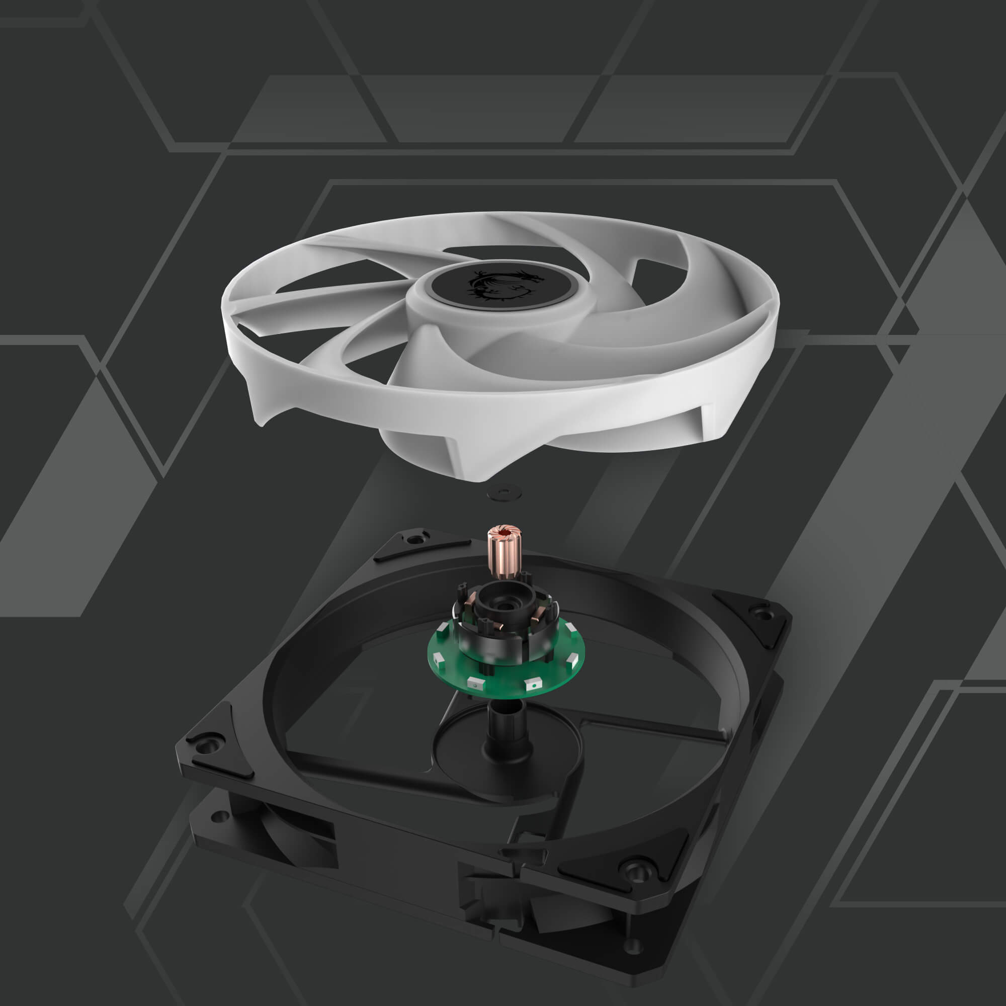 MSI'ın CycloBlade 7 fanları hibrit kanat tasarımı ile güçlü bir hava akımı ve yüksek statik basınç üretir. Bu tasarım yoğun oyun seanslarında soğutma performansını arttırırken kapsayıcı bir deneyim için gürültü seviyesini düşük tutar.