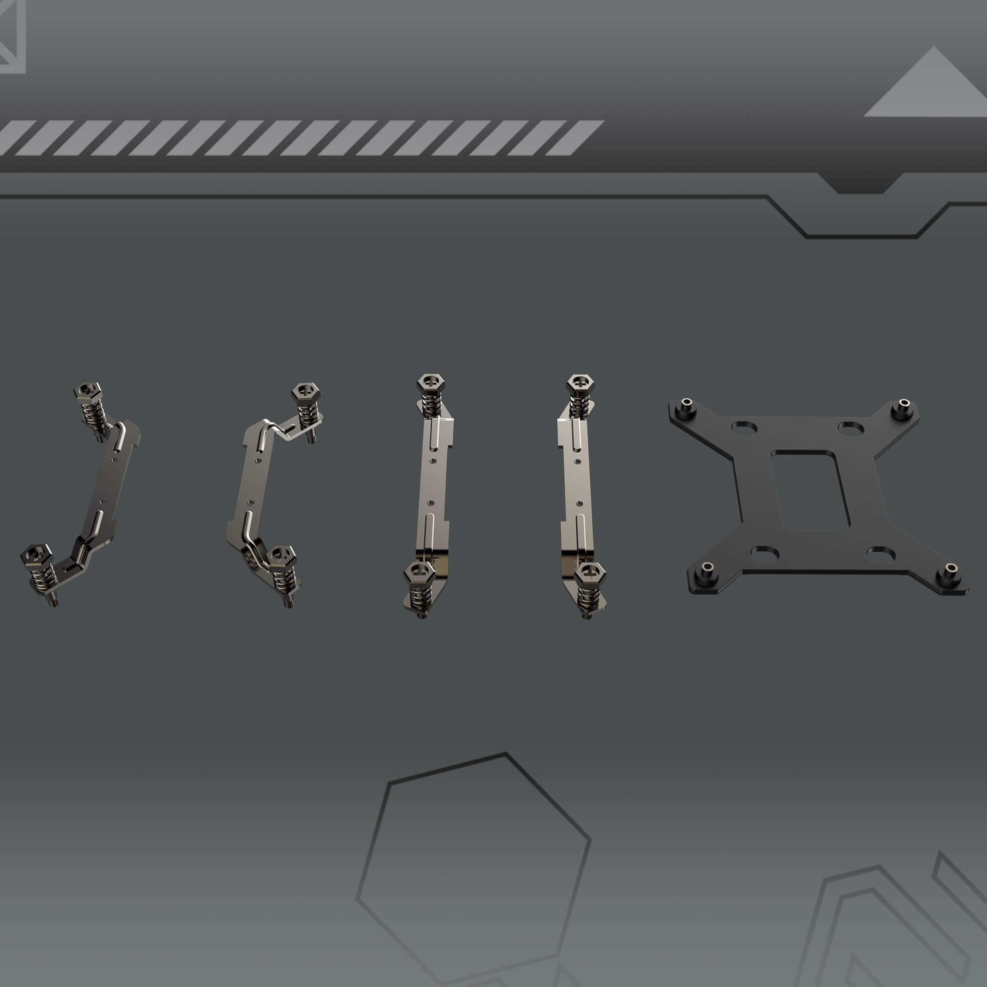 Intel ve AMD platformları için montaj kiti ile gelir. LGA 1700 / 1851 ve AM4 / AM5 soketleri destekler. Yaylı vida tasarımı kolay bir montaj imkanı sunar. Intel soket kiti takılı olarak gelir.