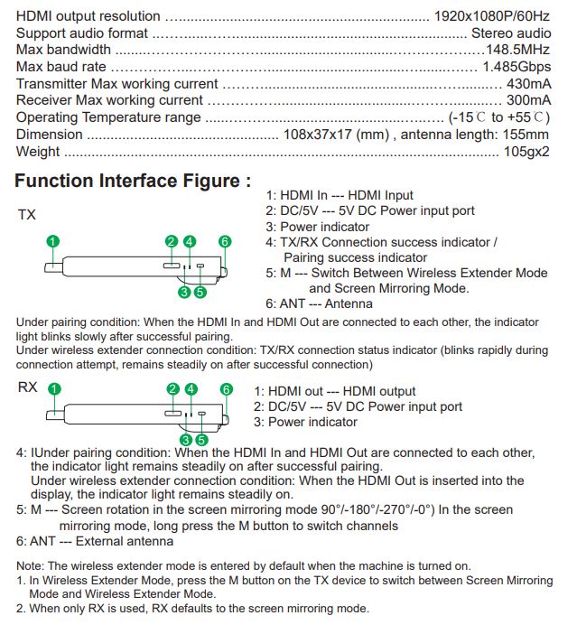 PCPRO HDWE07 150M WIRELESS KABLOSUZ HDMI EXTENDER KABLOSUZ HDMI GORÜNTÜ AKTARICI