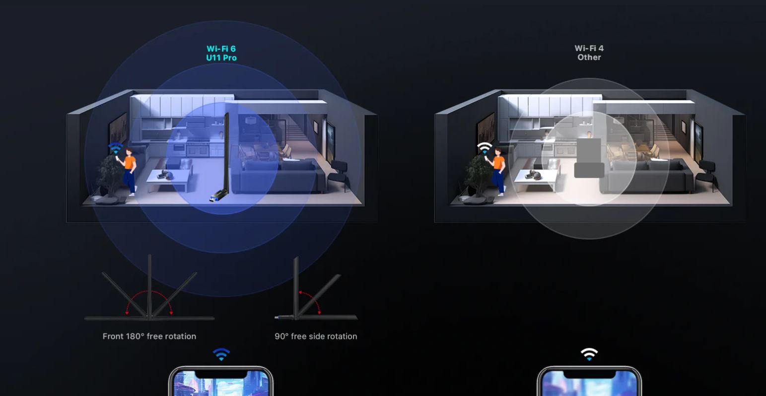 TENDA U11 PRO AX900 Çift Bantlı Antenli Wi-Fi 6 USB Adaptörü