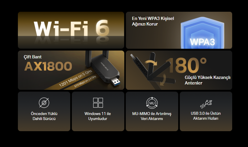 ‡WPA3 kullanımı, AP'lerin de ilgili özelliği desteklemesini gerektirir. WPA3'ü kullanmak için MERCUSYS’in resmi web sitesinden indirebileceğiniz sürücüleri güncellemeniz gerekebilir.