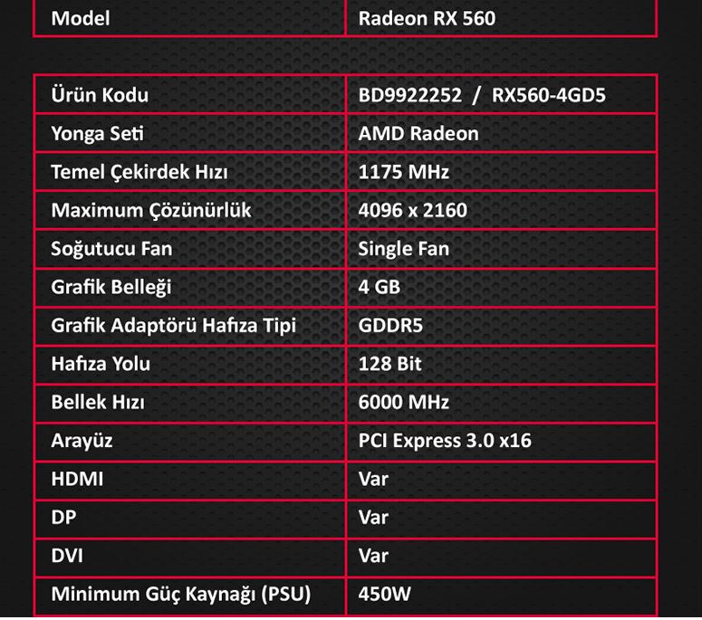 TURBOX ARCADE HERO N RX560 4GB GDDR5 128BİT DVI HDMI DP ÇİFT FAN